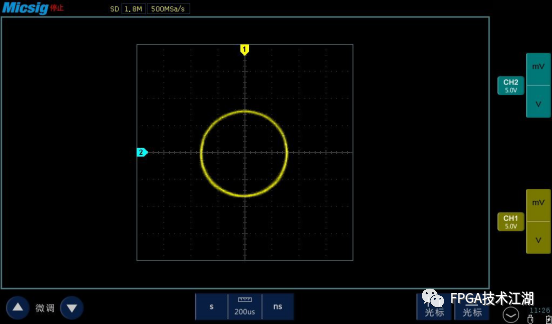 (4) 通过调节垂直刻度、移动波形位置(滑动)使波形达到最佳效果,可得到如下所示的圆形。