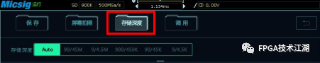 平板示波器的存储深度设置如下: