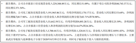 8月18日,航锦科技发布半年报称,2021年上半年,公司实现营业收入为22.93亿元,同比增长51.09%;归属于上市公司股东的净利润为4.07亿元,同比增长371.54%。