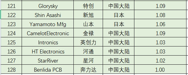 以下是集微网整理的NTI202020年度全球产值超过1亿美元的PCB企业数共127个(习惯称之为百强企业)