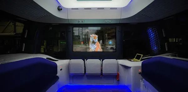 由于车上的人不再肩负驾车职责,所以乘坐期间,也大可以做自己想做的事情。无论是窝在零重力座椅里滑手机,还是利用车内的智能控制台、超大曲面屏看个电影,甚至是放平座椅调整灯光小憩一会,尽管随意。