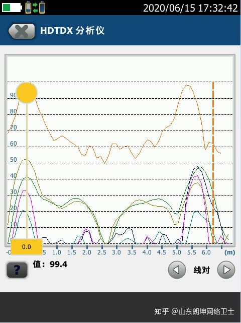 HDTDX是查看NEXT(NEAR END CROSSTALK,近端串扰)的故障排查工具,合格连接器的正常曲线一般不会超过35%,理想情况下事件波动不超过10%,如果超过了,则超过该值的事件不多于4个。