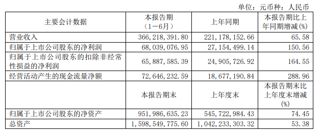 8月23日,气派科技发布2021年半年度报告显示,上半年营业收入为3.66亿元,同比增长65.58%;净利润为6804万元,同比增长150.56%;扣除非经常性损益后净利润为6589万元,同比增长164.55%。