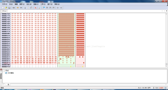 这里需要着重说明一下,bin文件不包含程序的地址和长度。步骤3填写的0x8500是程序的起始flash地址,0x6900是程序的长度。生成的bin文件用FlexHEX打开如下图: