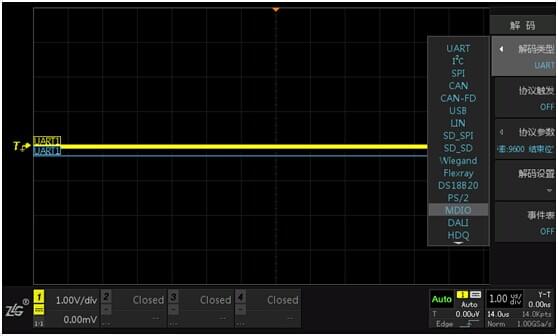 至此,MDIO协议的演示就到这里了,你的开发是否需要用到MDIO总线呢,是否也跃跃欲试想要窥探总线上出现的各种问题呢,ZDS2022 plus与ZDS2024 plus目前都已支持MDIO协议,赶紧升级你的示波器,将MDIO加入其中吧。