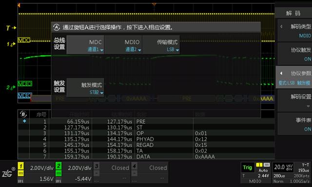 除了PHYAD触发外,MDIO触发还可以根据ST,OP,REGAD和DATA段进行触发,功能非常实用。
