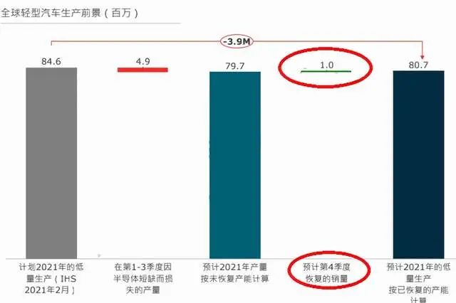 图4 I HS预测的全球半导体短缺对于汽车减产的预测