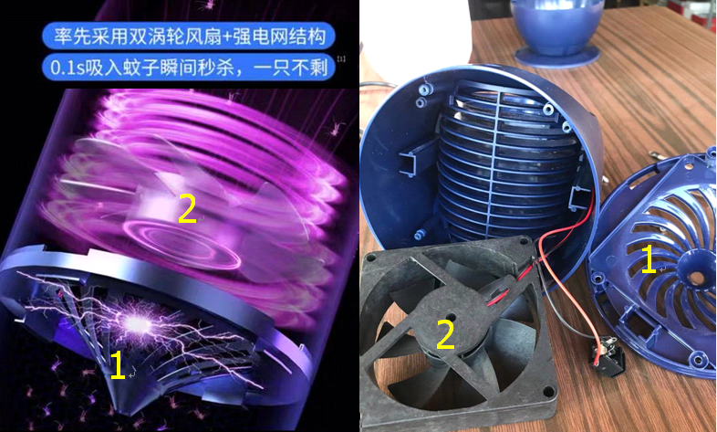 20扇双涡轮引擎,说明这里还有汽车发动机技术,可以在0.1秒吸入蚊子瞬间秒杀。这些功能还是在上面提到部分的上边和下边,上边是一个小风扇就是“涡轮”,下边是保护风扇的锥形塑料盖,就是“电网”。想象力超赞!