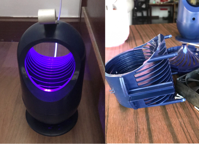 而5年前和现在的灭蚊器是不是一样呢?5年前那个没有抓到一只蚊子,也没有拆解,表面一看就八九不离十了:上面是紫光灯灯罩,中间是风扇,下面是收集蚊虫的盒子。