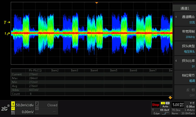 现在很多被测件要求测量出峰峰值为几毫伏的纹波。这时候最好用同轴电缆来进行测量,虽然同轴电缆的阻抗只有50欧姆,但是对于毫偶级别的被测电源来说,负载影响很小,测试精度非常高。