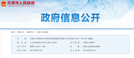 2021年08月25日 | 天津加快数字化发展三年行动方案发布,中芯国际等为重点