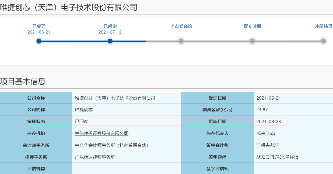 2021年08月25日 | 唯捷创芯回复科创板首轮问询:具5G射频前端解决方案