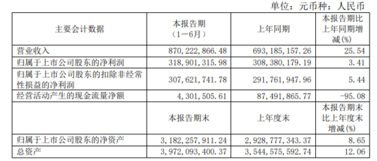 8月24日,睿创微纳发布2021年半年度报告显示,上半年营业收入为8.7亿元,同比增长255.54%;净利润为3.19亿元,同比增长3.41%;扣除非经常性损益后净利润为3.08亿元,同比增长5.44%。