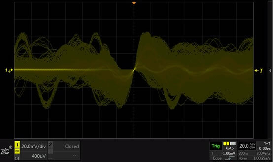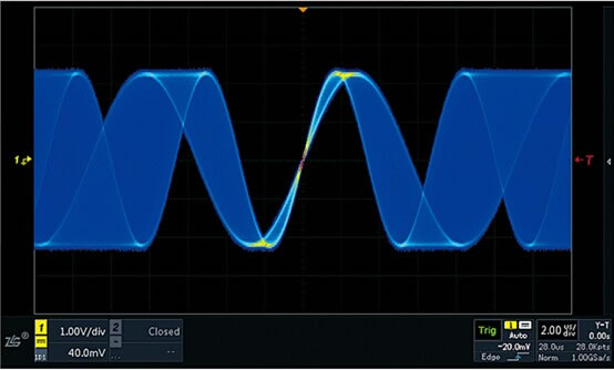 除此之外,为了方便我们更清楚地了解波形出现的概率大小,ZDS2022示波器还配备了色温显示的功能,今天我们就来分享一下ZDS2022示波器的色温显示的功能,简单来说,就是用波形色温的冷暖来反映波形出现频率的大小,出现频率低的波形用冷色显示,出现频率高的波形用暖色显示,如图2所示。