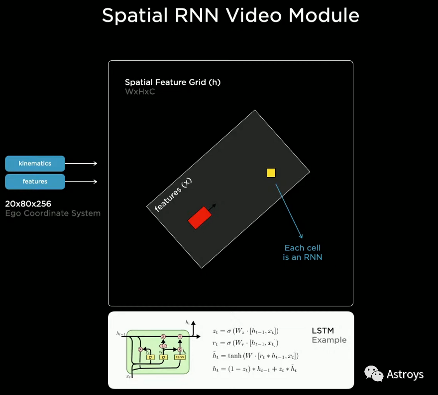 所有这些宝贵的信息随后被送入Video Module。Video Module利用这些信息来理解车辆本身和它在当前和过去几帧中的环境。这个理解过程是通过一个RNN完成的,RNN会在所有帧上反复处理所有这些信息,以更好地理解Context,并最终构建出定义明确的地图。由于使用了过去的帧,RNN现在就有更多的信息来更好地理解当前的状况,这对临时遮挡等情况来说是必要的。