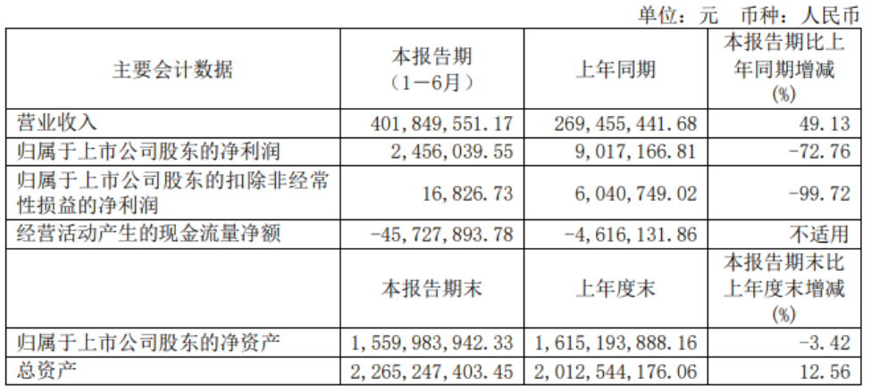8月25日,沃格光电发布2021年半年度报告,该公司实现营业收入4.02亿元,同比增长49.13%。归属于上市公司股东的净利润245.6万元,同比下降72.76%。