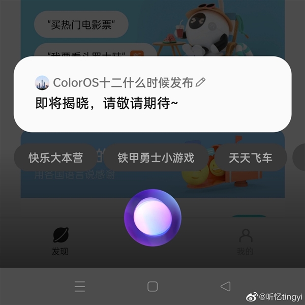 有网友曝料,自己试着询问OPPO的语音助手Breeno,ColorOS 12何时发布。