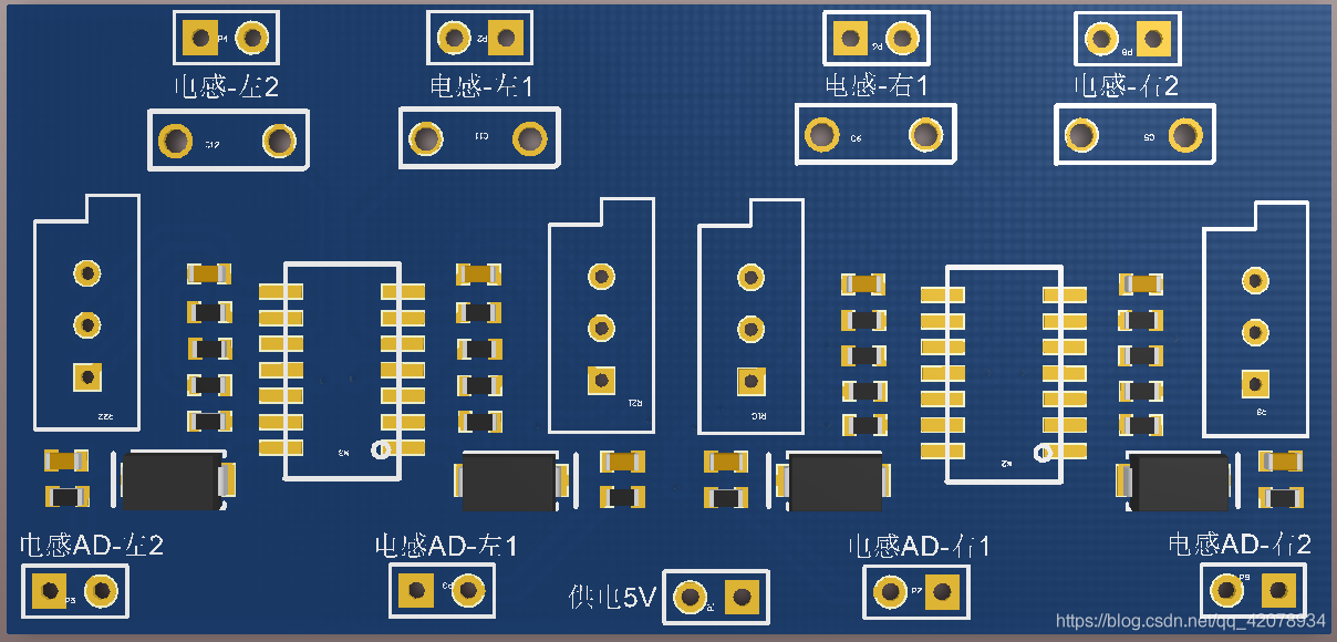 电路板大小为3*6cm,功耗小,适用于节能组智能车,此电路仍可继续改进,用一个运放芯片即可完成4路信号的放大,体积同样会更小,功耗更低。