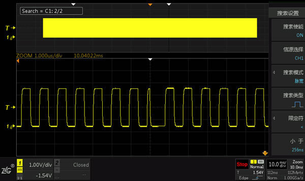 除此之外,ZDS2022示波器上还可以实现自定义存储区域,如果您需要对当前屏幕上的某一段波形进行保存的时候,您只需打开一键缩放(ZOOM),调整副时基,使副时基窗口显示出您感兴趣的区域,然后根据需要设置保存格式,就可以完成自定义区域存储了,这将大大省去您筛选数据的时间。