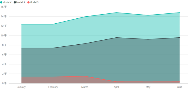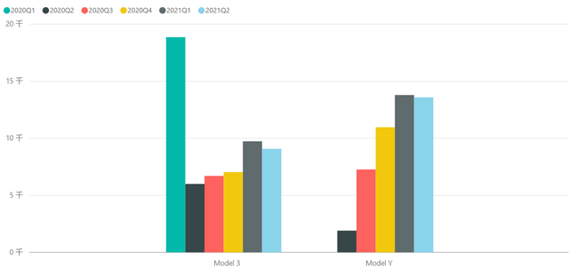 图3 美国加州市场的Model 3和Model Y的交付对比