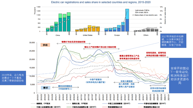 图8 碳酸锂供应能力&价格和补贴和地区需求相关性