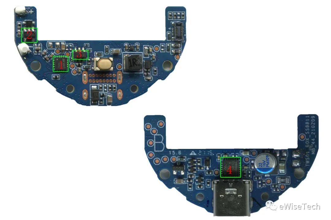 2:Knowles -麦克风3:Knowles -麦克风4:AIROHA -蓝牙5.2 SoC充电盒主板IC(下图):