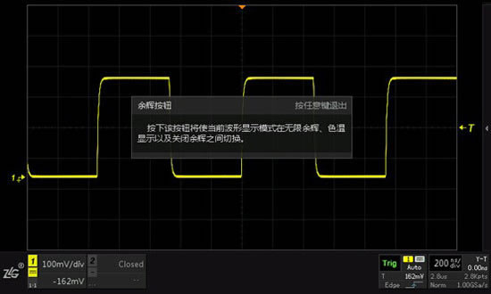 我们为ZDS2022示波器操作面板上的每一个按键都设置了“注释”,当您不知道操作面板上的某个按键的功能时,只需要长按这个按键,系统就会弹出窗口为您讲解。