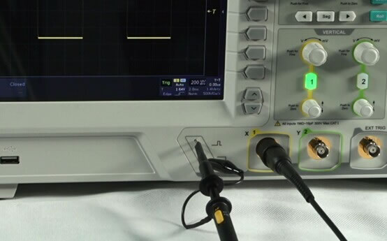 由于每台示波器的品质不同,为了保证测量的准确性,在使用示波器之前,都应该对探头进行低频补偿。