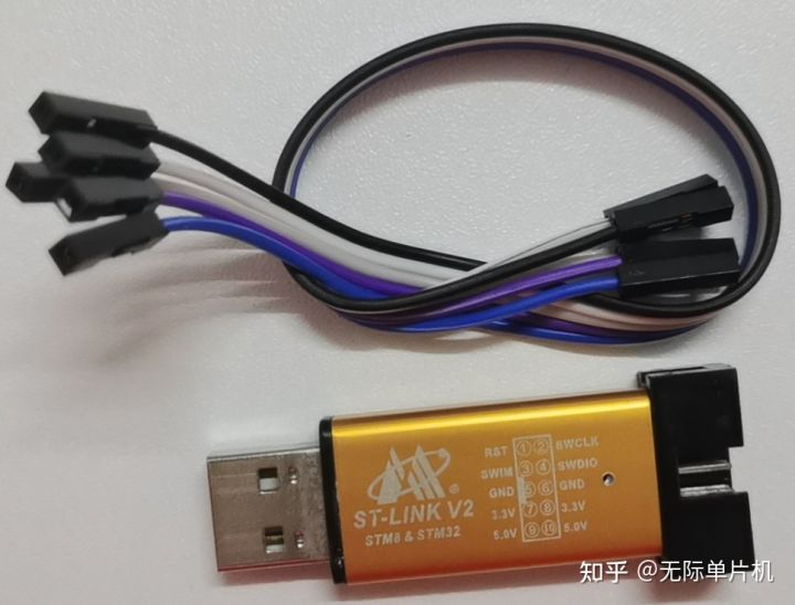 比较通用的STM8的烧录器是ST-LINK V2. 无际单片机编程使用的烧录器如下图所示: