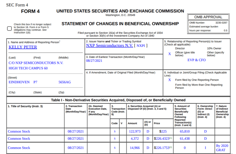 2021年09月01日 | 恩智浦CFO卖掉70%的股份入手 3200 万美元,引外界猜疑