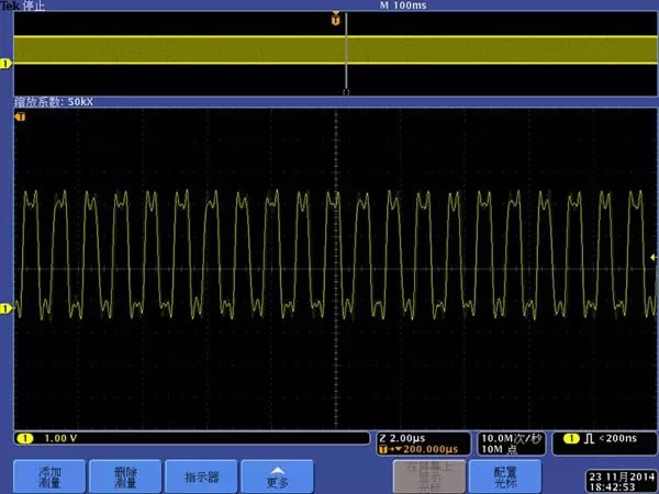 而有些示波器,虽然有一定的存储深度,但是在全存储深度内,放大波形细节后,失真非常严重!这样的存储深度也就没有任何价值了!