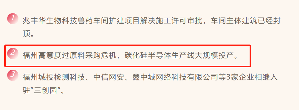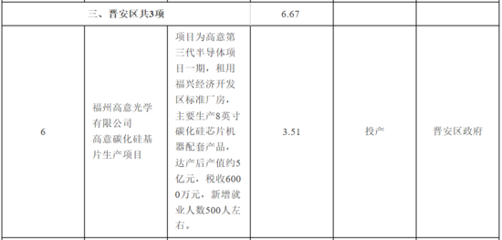 其中,技改扩产攻坚方面,福州将推动高意碳化硅基片等128个亿元以上重点技改项目启动实施。