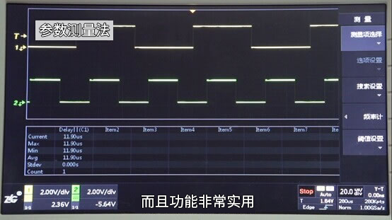 手动光标测量吗?这确实是一种常用的方法,但不免会造成一些测量误差,那有没有什么更好的方法呢?我们先来看下ZDS2022示波器是如何测量两路信号的时间差吧。