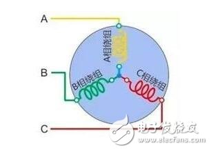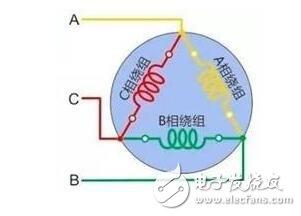 把电机三相线圈的每一相的绕组的始端依次相接的连接。原理图如下: