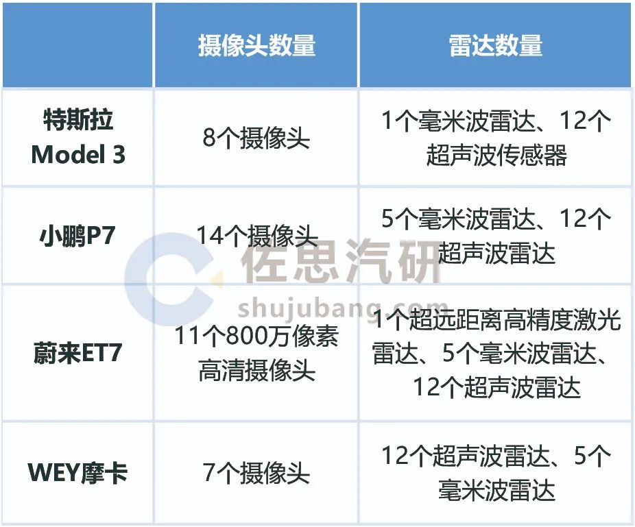 典型智能汽车传感器搭载量