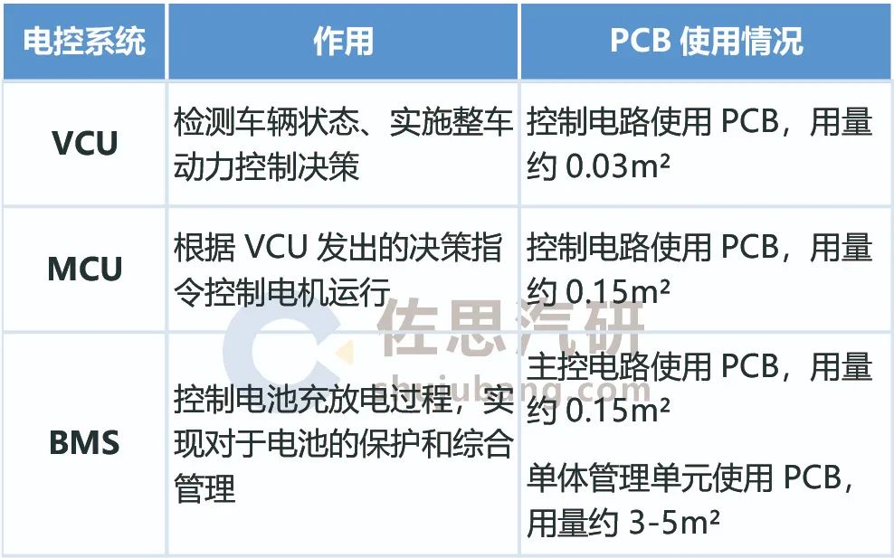 新能源汽车电控系统PCB使用情况