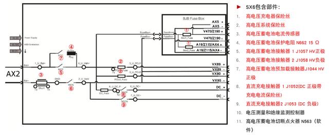 BJB电池高压管理(由Draxlmaier提供的):主要的目的是管理高压接触器,并且每隔30s进行绝缘检查