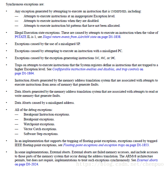 SError本质上是一种异步外部abort(asynchronous external abort)。所谓异步,就说是发生异常时硬件(相关的寄存器)不能提供有效信息用于分析定位,异常发生时的指令,并不是导致异常的指令。外部意味着异常来自于外部存储系统(相较于CPU来说,MMU是内部的)。通常是硬件触发的问题,比如硬件的clock出问题或者硬件本身的问题导致的bus访问硬件时出现问题。