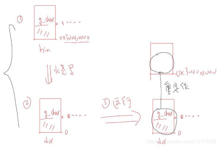 首先我们在bin文件里面,让代码段和全局变量靠在一起,然后把bin文件烧写到norflash上面,然后运行的时候,我们前面的代码需要把全局变量复制到0X30000000的地方, 这就是重定位。