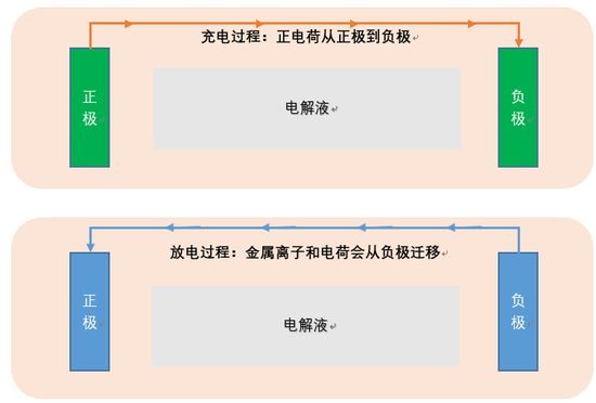 在充电过程中,钠离子或锂离子会携带着正电荷从正极流向负极,而负电荷电子则通过外部电路一同运动,最终实现电流的传输。而放电过程则相反,金属离子和电荷会从负极迁移至正极,从而实现电流的反方向传输。