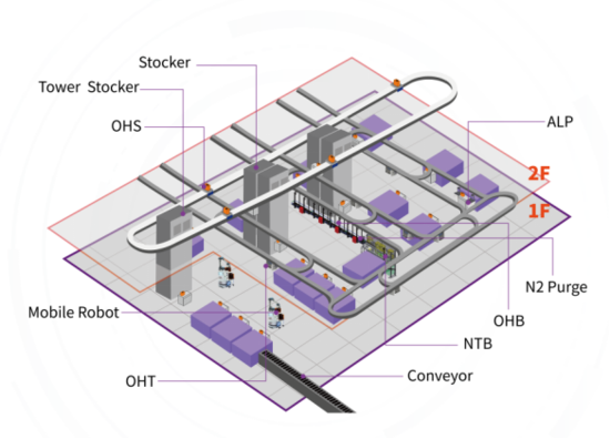 在半导体晶圆厂中,AMHS是工厂稼动率及品质一致性的重要保证之一。以大陆目前量产的先进工艺节点28nm为例,其平均光刻层数近50层、工艺步骤超过1000步、生产周期90天左右,一个4万片月产能28nm工艺节点的全自动晶圆厂每天的晶圆盒传送量超10万次,而此时AMHS系统“两高”—高效率、高可靠性,“两低”—低尘、低振动的特点就被展现出来。因此无论是满足效率需求、还是减少人员对无尘车间及晶圆品质的影响,AMHS都起到了至关重要的作用,成为先进工艺晶圆厂大规模量产的必备系统。