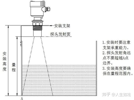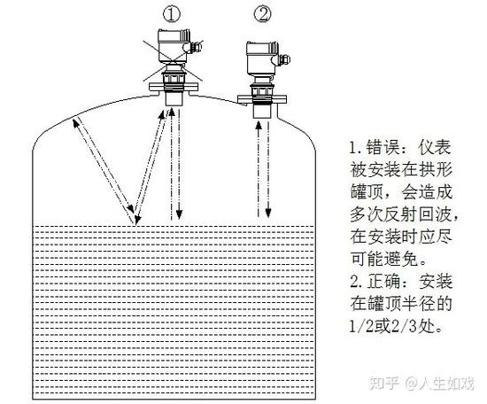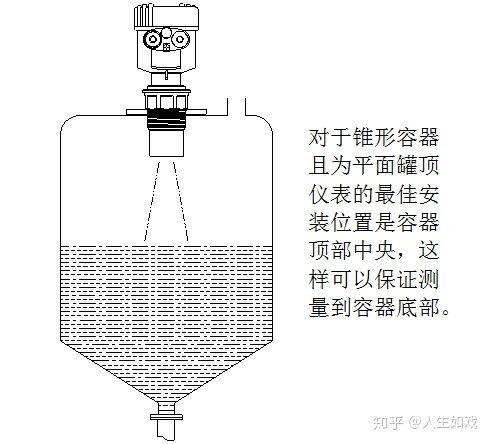 3、超声波液位计在不同形状储罐(沟槽、拱形罐、锥形罐)下的安装位置