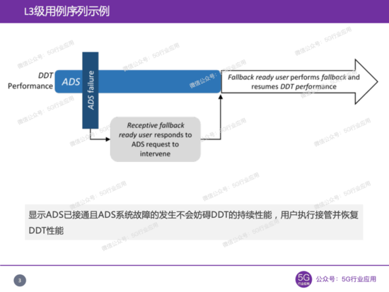 L3级、L4级或L5级ADS的系统故障或超出ODD条件时,区分以下三个单独的功能:(i)DDT性能,(ii)DDT接管性能,以及(iii)实现最小风险条件。