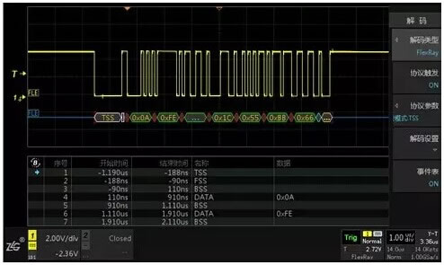 大家好,对于汽车行业中常用的高速、具备故障容错能力的FlexRay总线,您还在单独购买模块去解析吗?ZDS2022示波器为您免费开放的21种协议触发与解码中就已包括了FlexRay总线!今天和大家分享FlexRay总线的解码操作!