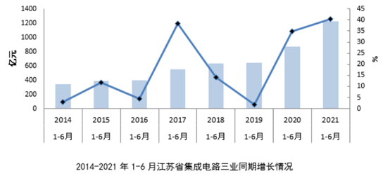 2021年09月10日 | 上半年江苏集成电路产业销售总收入超1540亿元,同比增超37%