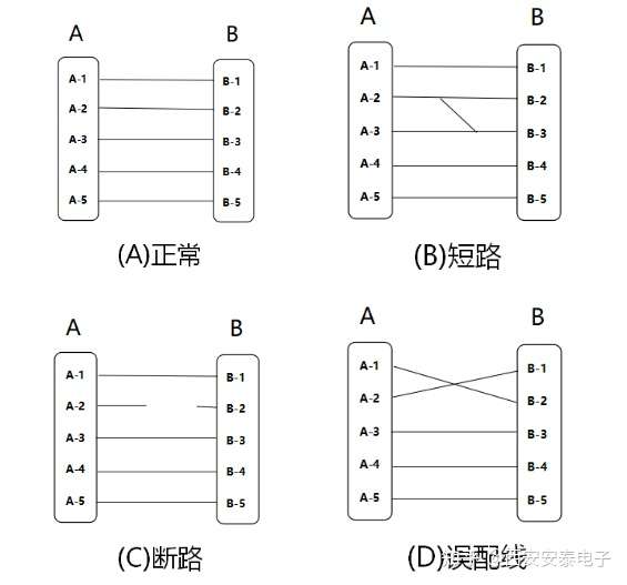 线束的正常连接及常见失效如下图所示: