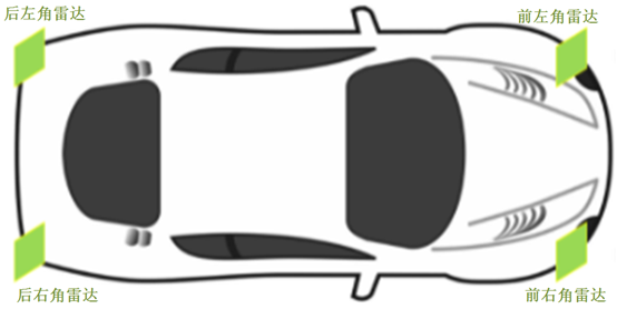 通常角雷达安装在前两个拐角处(见下图),这种宽阔的视野使车辆不仅能感知侧面的物体,还能感知车辆前方甚至后方的物体。与前向雷达相比,这种雷达对车辆侧面或稍微偏离车辆的物体具有更大的态势感知能力。例如,如果相邻车道上的车辆开始执行“近距切入”(快速驶入车辆正前方的车道),单单前向传感器等到车辆明显驶入车道才可能检测到驶入车辆,导致本车突然制动,让驾驶员感觉车辆未识别其他车辆的变道驶入或反应迟缓。