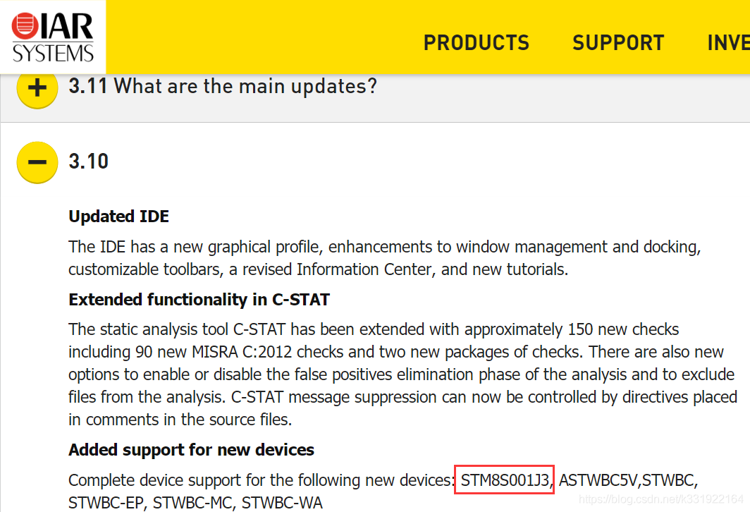 IAR For STM8 3.10或以上版本才支持STM8S001,可以直接在官网免费下载,如下图所示。