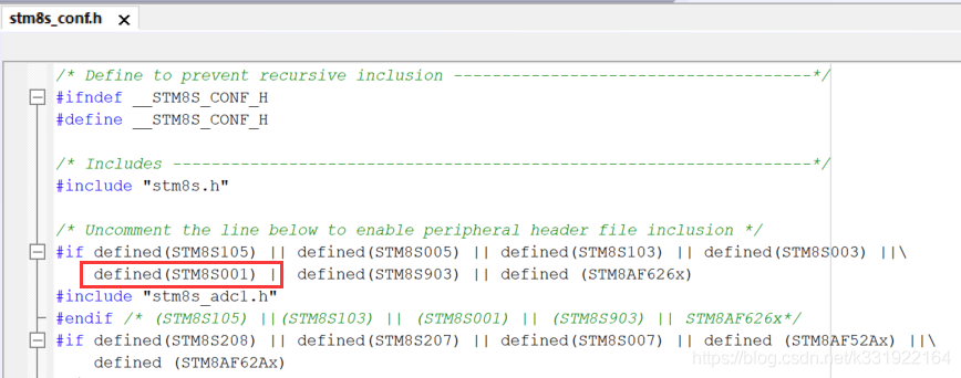 可以看stm8s_conf.h文件中,是否有红框的条件。