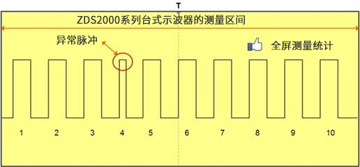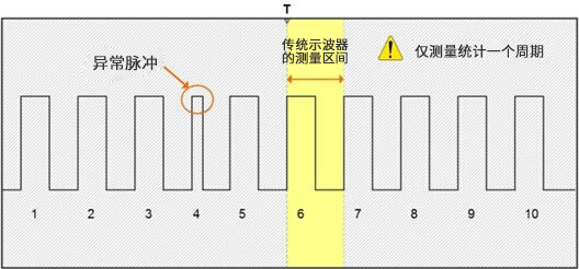 “真正意义”的参数测量统计采用全存储深度对波形进行测量统计。